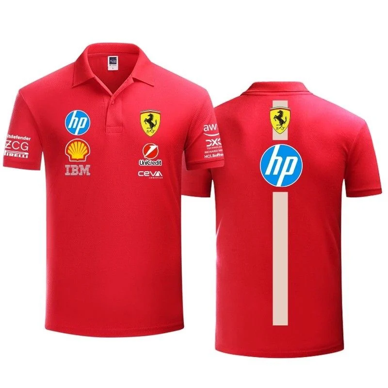 2025 Ferrari F1 RacingTeam Uniform POLO Shirt Short-sleeved Versatile for Men in Summer For Ferrari SP1 812 F40 F12TDF SF90 Roma